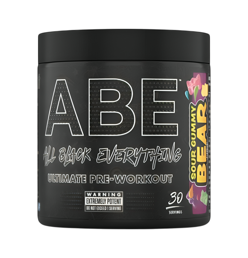 ABE – All Black Everything är en pulverbaserad pre-workout med tydlig Sour Gummy Bear-smak. Formulan kombinerar välkända prestationsingredienser som citrulline malate, beta-alanin, kreatin monohydrat, taurin, kolin samt koffein, tillsammans med niacin och vitamin B12. Produkten blandas enkelt med vatten och används som ett smakrikt och praktiskt tillskott inför träning.
