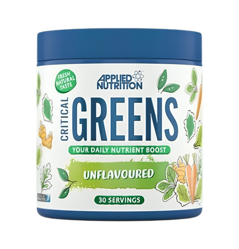 Applied Nutrition Critical Greens Unflavoured är ett neutralt greenspulver som gör det enkelt att komplettera kosten med gröna superfoods. Blandningen kombinerar ärtprotein, spirulina, alfalfapulver, barley grass, wheatgrass, kale, spenat, broccoli, vattenkrasse och persilja samt grönt te-extrakt (95%) och betakaroten. Den neutrala Unflavoured-varianten passar i smoothies, juice eller vatten och låter dina favoritrecept behålla sin smak.