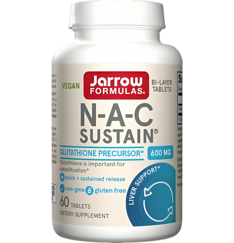 Jarrow Formulas N-A-C Sustain 600mg — N‑Acetylcystein i tablettform