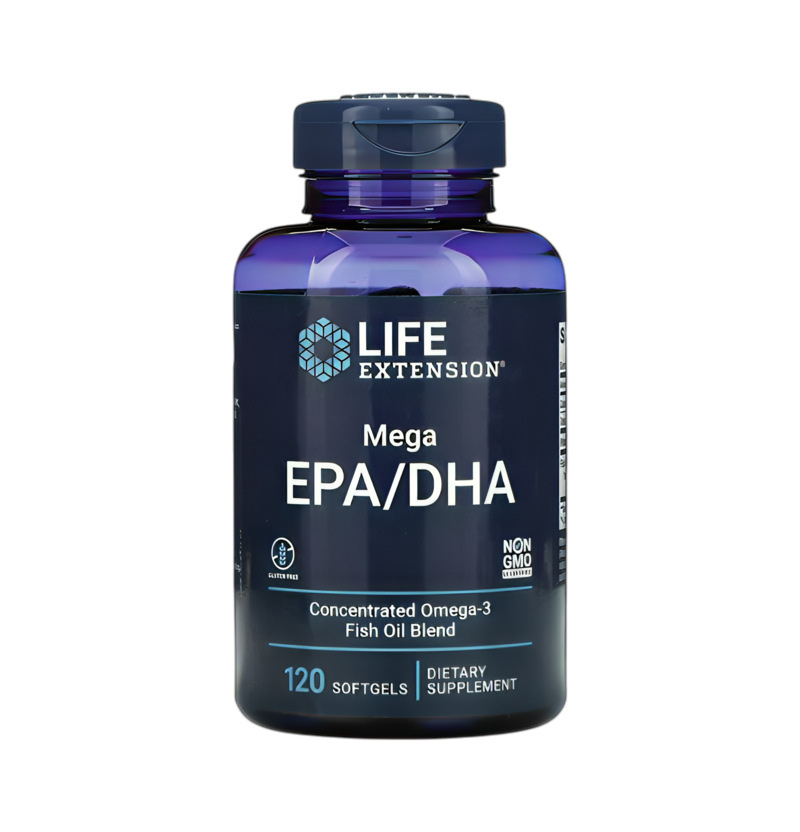 Life Extension Mega EPA/DHA — högdoserad omega‑3 i mjuka gelkapslar