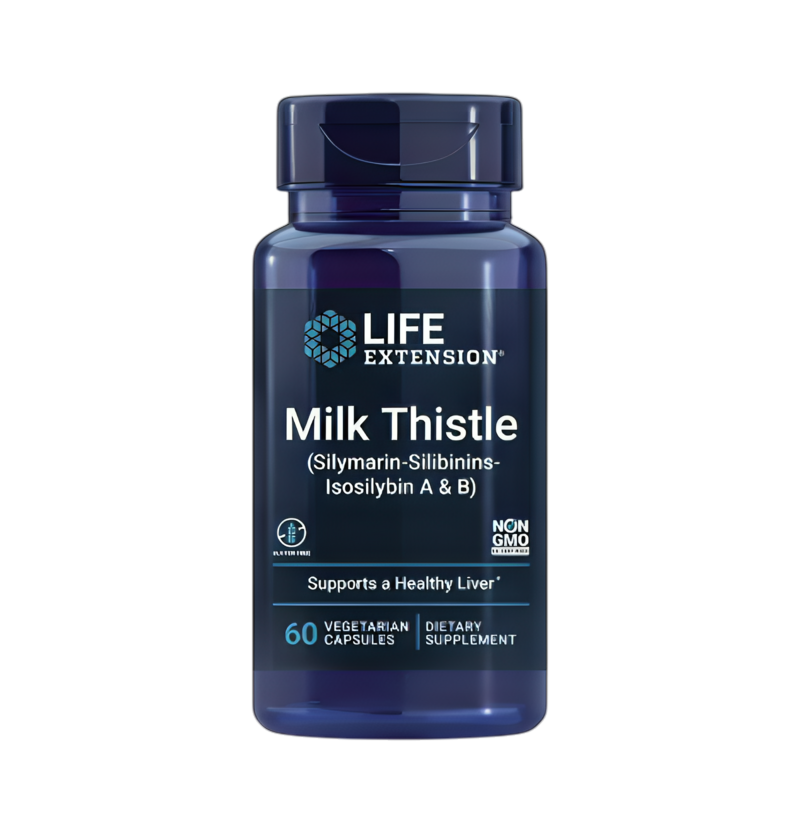 Life Extension Milk Thistle är ett växtbaserat kosttillskott i vegetabiliska kapslar som levererar ett standardiserat extrakt från milk thistle-frön. Varje kapsel innehåller 750 mg extrakt, varav 600 mg silymarin, inklusive 225 mg silibinins och 60 mg isosilybin A & B. Produkten är framtagen för dig som vill komplettera kosten med ett koncentrerat silymarin-komplex i en enkel daglig dos — en kapsel om dagen, med eller utan mat.