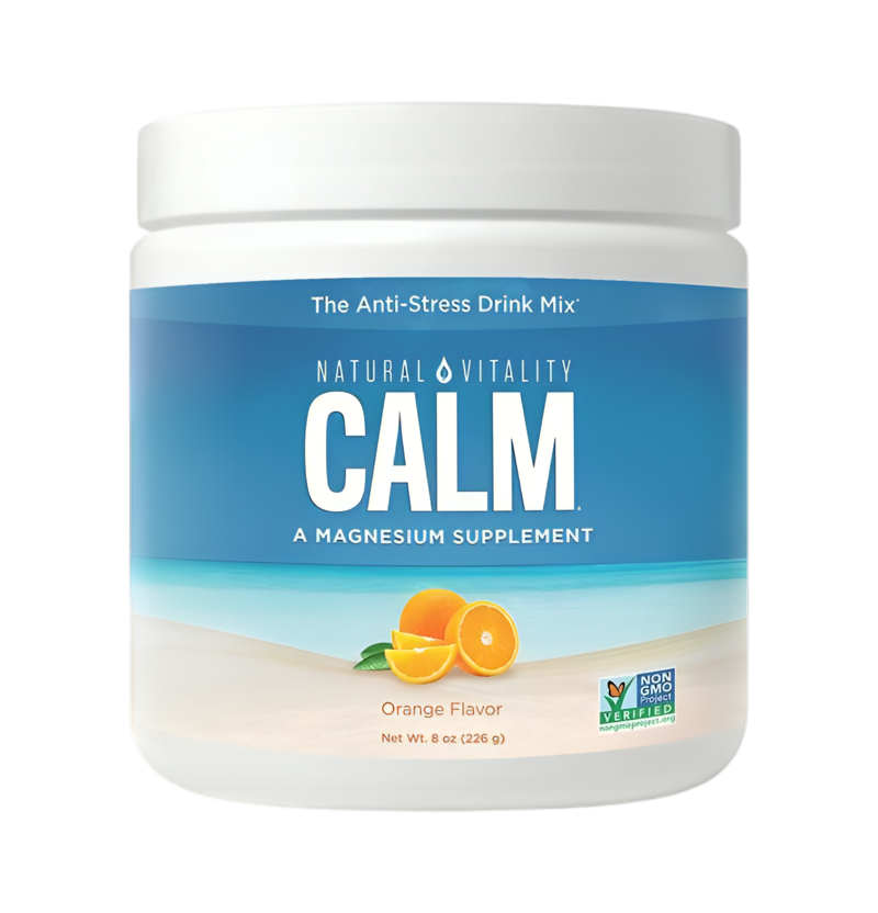 Natural Vitality Natural Calm Orange är ett lättlösligt magnesiumtillskott i pulverform med frisk apelsinsmak. Varje portion ger 325 mg magnesium (som magnesiumkarbonat) tillsammans med citronsyra och sötning från stevia. Pulvret löses klart i vatten och blir en milt brusande, fräsch dryck — ett enkelt sätt att komplettera det dagliga magnesiumintaget. Magnesium bidrar till normal muskelfunktion, nervsystemets normala funktion och elektrolytbalansen.