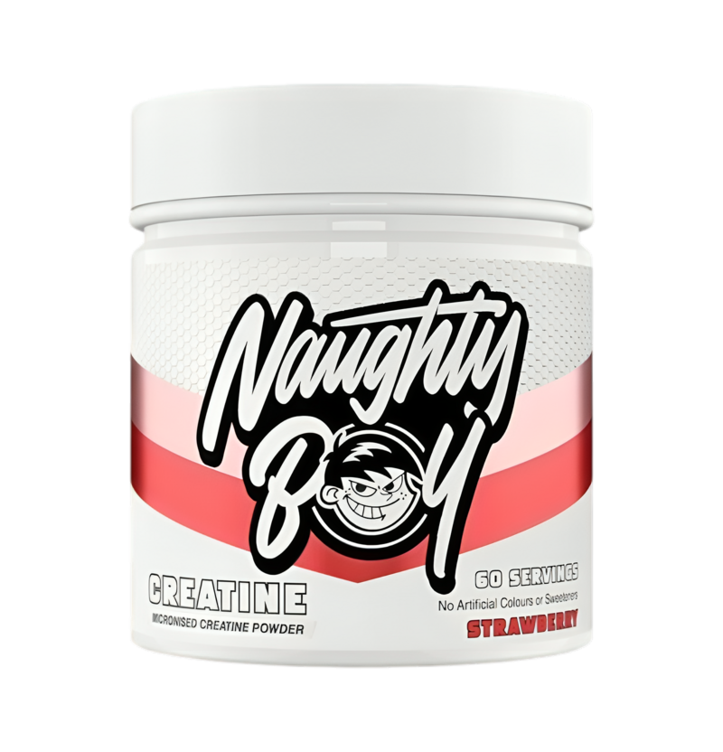 Naughty Boy Creatine Strawberry är ett lättanvänt kreatinpulver som ger ett snabbt tillskott av kreatinmonohydrat i en frisk jordgubbssmak. Varje portion innehåller 4,18 g kreatinmonohydrat kompletterat med äppelsyra för en renare smakprofil och är sötad med stevia. Kreatin bidrar till ökad fysisk prestationsförmåga vid upprepad, kortvarig, högintensiv träning; effekten uppnås vid ett dagligt intag av 3 g. Produkten löser sig lätt i vatten och är smidig att ta med i shakern.