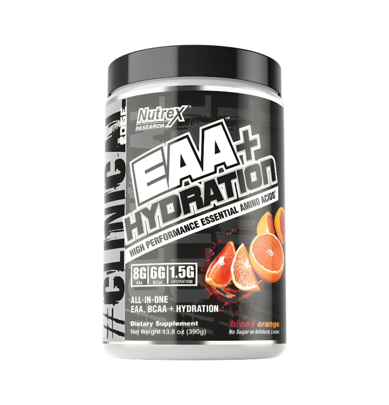 Nutrex EAA + Hydration är ett lättblandat aminosyrapulver som kombinerar en komplett profil av essentiella aminosyror (EAA) med en hydrationsblandning av elektrolyter. Varje portion innehåller magnesium, kalium och natrium samt kokosvattenkoncentrat och taurin för bättre vätskebalans. Den friska Blood Orange-smaken gör drycken lättdrucken under träning, efter passet eller när du behöver en uppfriskande påfyllning under dagen.