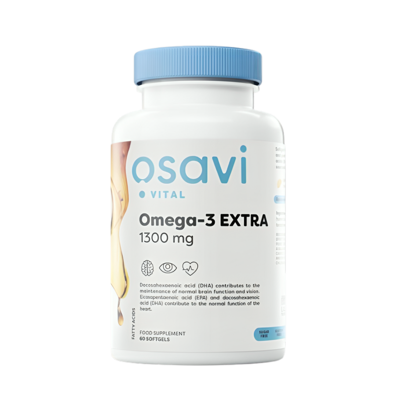 Osavi Omega-3 Extra passar dig som vill komplettera kosten med kvalitativ fiskolja på ett smidigt sätt. Idealisk som daglig rutin i en aktiv vardag eller i samband med träning — tas tillsammans med måltid. En förpackning räcker cirka 30 dagar vid rekommenderad dosering.