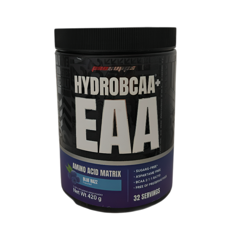 HydroBCAA + EAA från ProSupps är ett lättblandat aminosyrapulver med komplett profil av essentiella aminosyror och förhållandet BCAA 2:1:1 i fräsch Blue Razz-smak. Formulan är framtagen för att enkelt komplettera ditt dagliga intag av aminosyror — före, under eller efter träning. Pulvret löser sig fint i vatten och fungerar lika bra i shaker som i sportflaska, vilket gör det smidigt att ta med till gymmet eller på löprundan.
