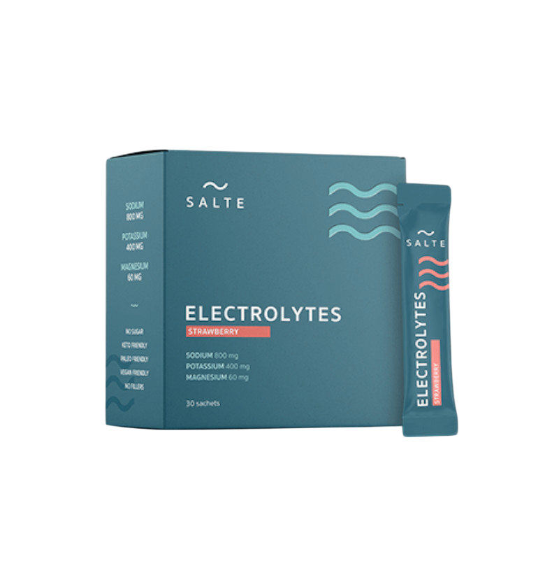 Salte Elektrolytpulver Jordgubb är ett elektrolyttillskott i praktiska portionspåsar, utformat för att återställa vätskebalansen och tillföra viktiga mineraler som natrium, kalium och magnesium. Varje dos innehåller 800 mg natrium, 400 mg kalium och 60 mg magnesium, vilket gör det till ett funktionellt val vid fysisk ansträngning, varma dagar eller annan vätskeförlust.