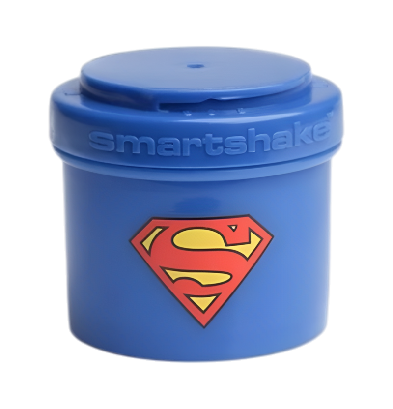 SmartShake Revive Storage är en praktisk och kompakt extrabehållare som gör det enkelt att ta med sig pulver, kapslar eller snacks. Med en volym på 200 ml och en klassisk Superman-design kombineras funktion och karaktär – perfekt på gymmet, jobbet eller resan.