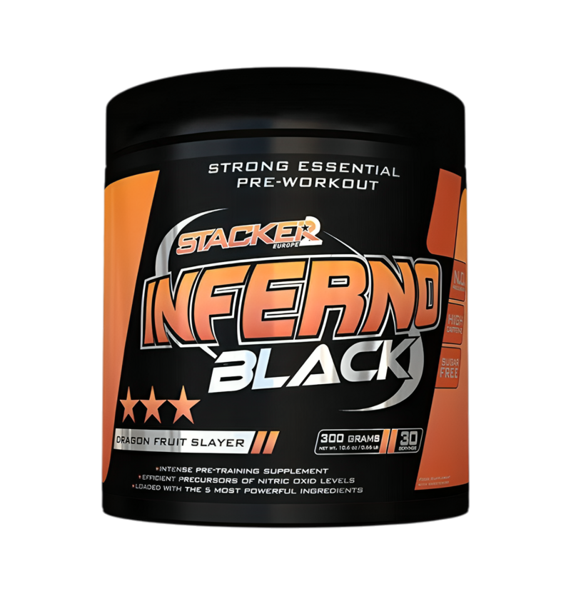 Inferno Black är ett kraftfullt pre-workout-tillskott utvecklat för intensiva träningspass. Varje portion (10 g) innehåller en avancerad blandning av aminosyror och koffein som ger energi och fokus. Formulan innehåller bland annat 4000 mg L-citrullin, 3000 mg beta-alanin, 1000 mg taurin och 300 mg koffein. Den friska smaken Dragon fruit slayer gör drycken både effektiv och uppfriskande.