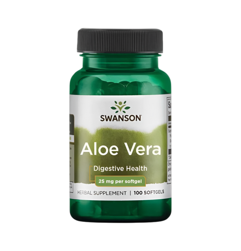 Swanson Aloe Vera 25 mg — mjuka kapslar för dagligt tillskott
