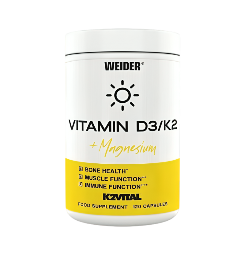 Weider Vitamin D3/K2 + Magnesium är ett smidigt och lättanvänt tillskott utformat för att komplettera det dagliga intaget av viktiga mikronäringsämnen. Produkten förenar vitamin D3, vitamin K2 och magnesium i en kapsel som tas med måltid. Vitamin D bidrar till immunsystemets normala funktion, medan vitamin K och magnesium hjälper till att bibehålla normal benstomme. Magnesium bidrar dessutom till normal muskelfunktion — ett bra val för både träning och vardagsliv, året runt.